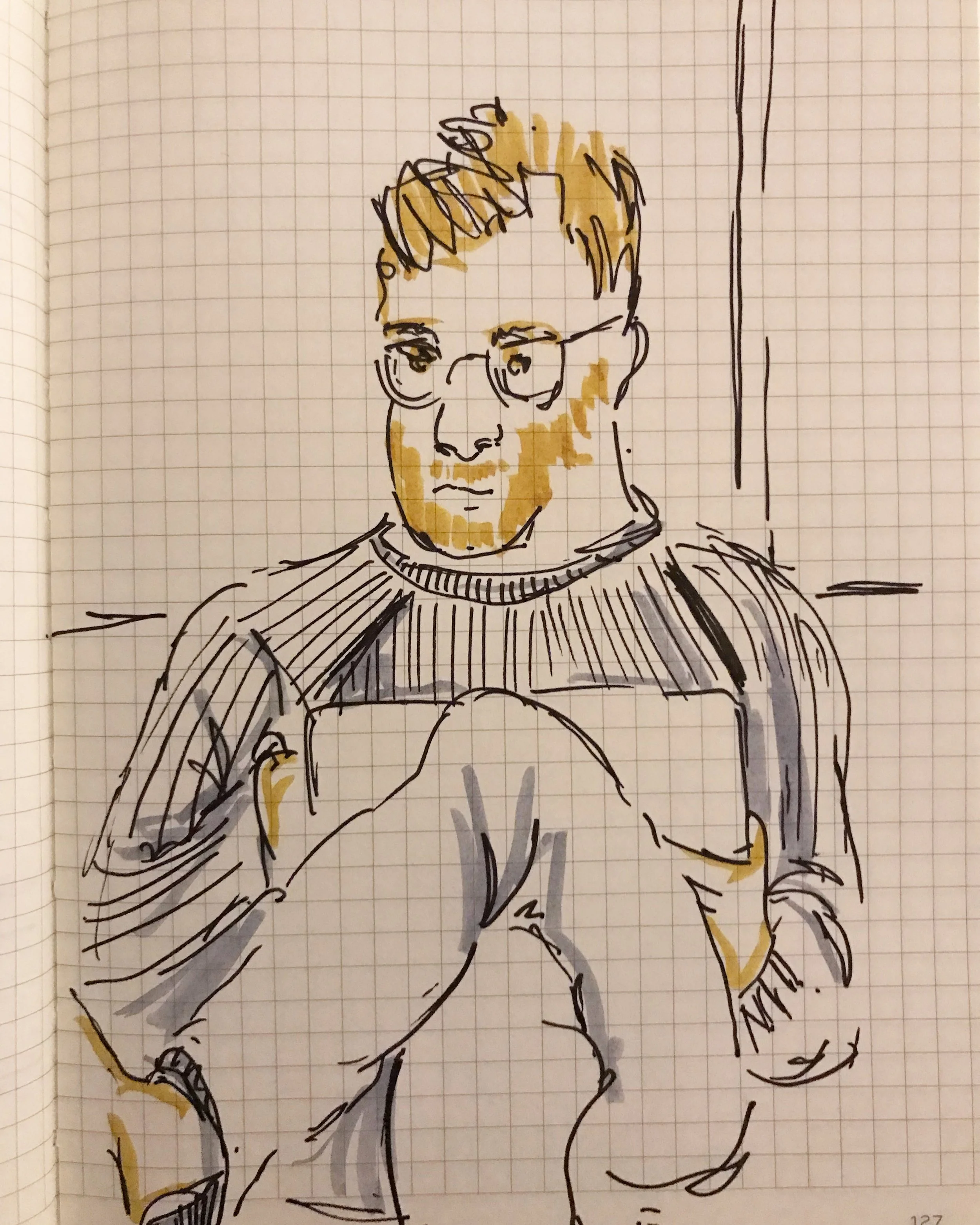 I try to sketch every day and always from my own life/experiences. Mostly this is based right in the moment and so has to be quick and impulsive. Sometimes it takes more time and deliberation.
